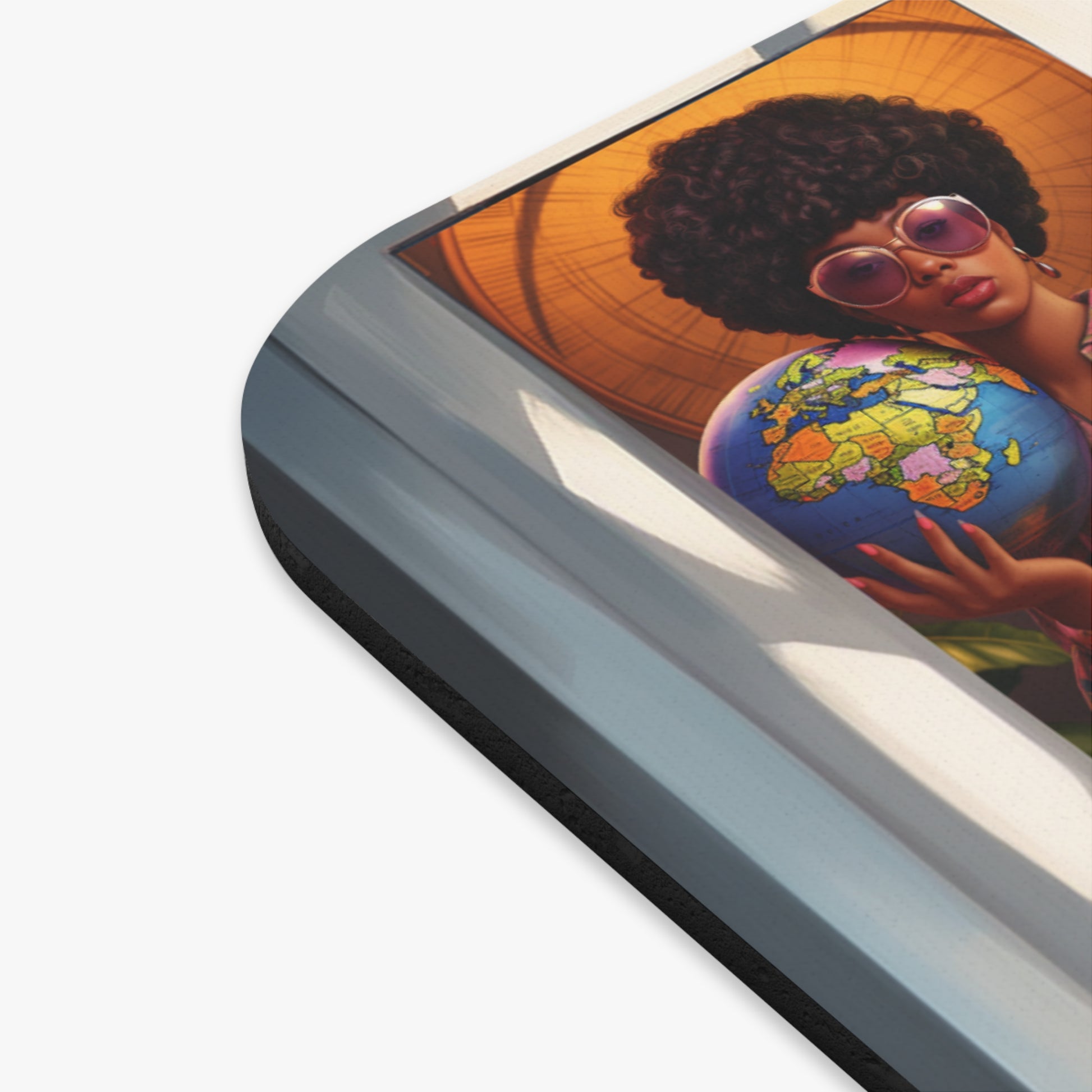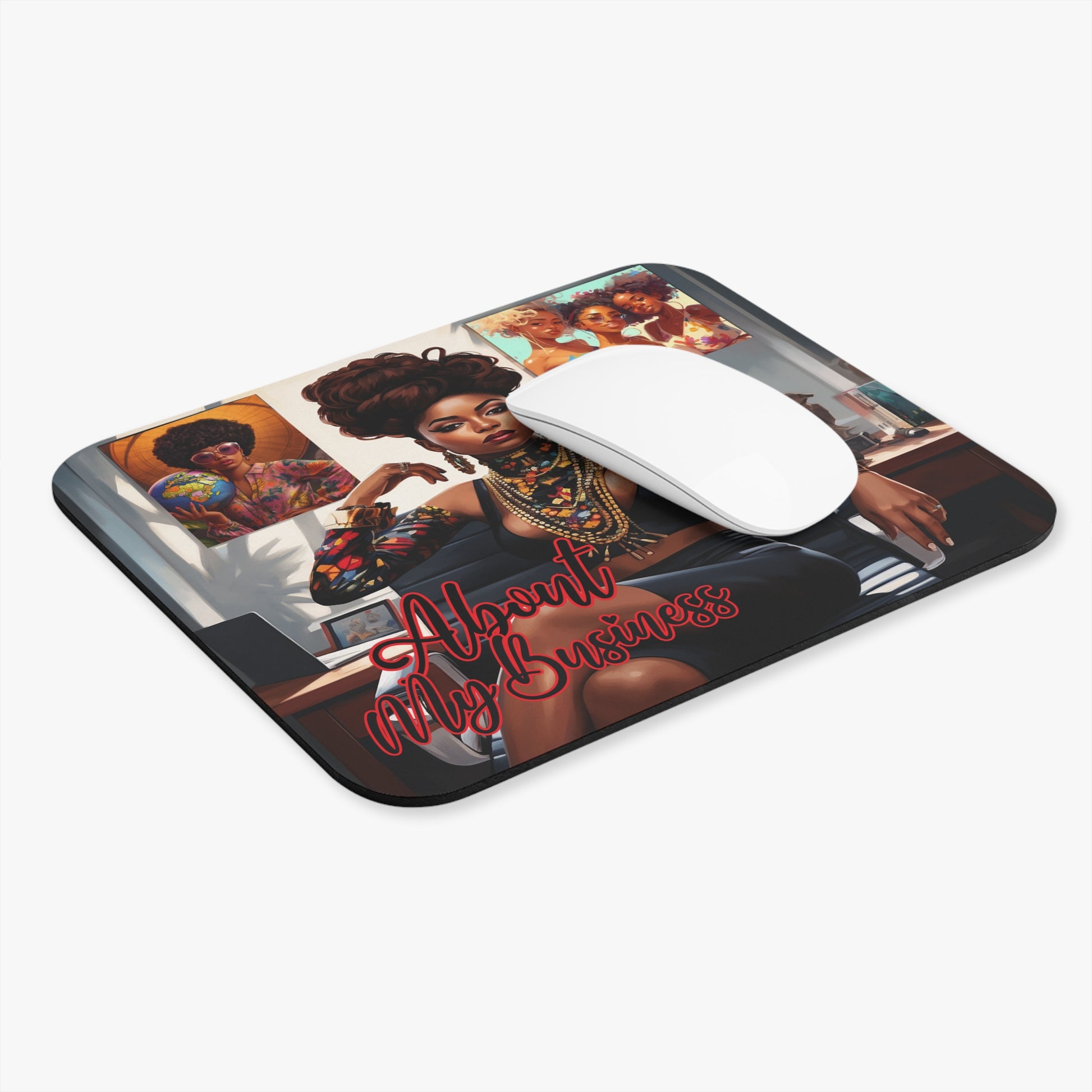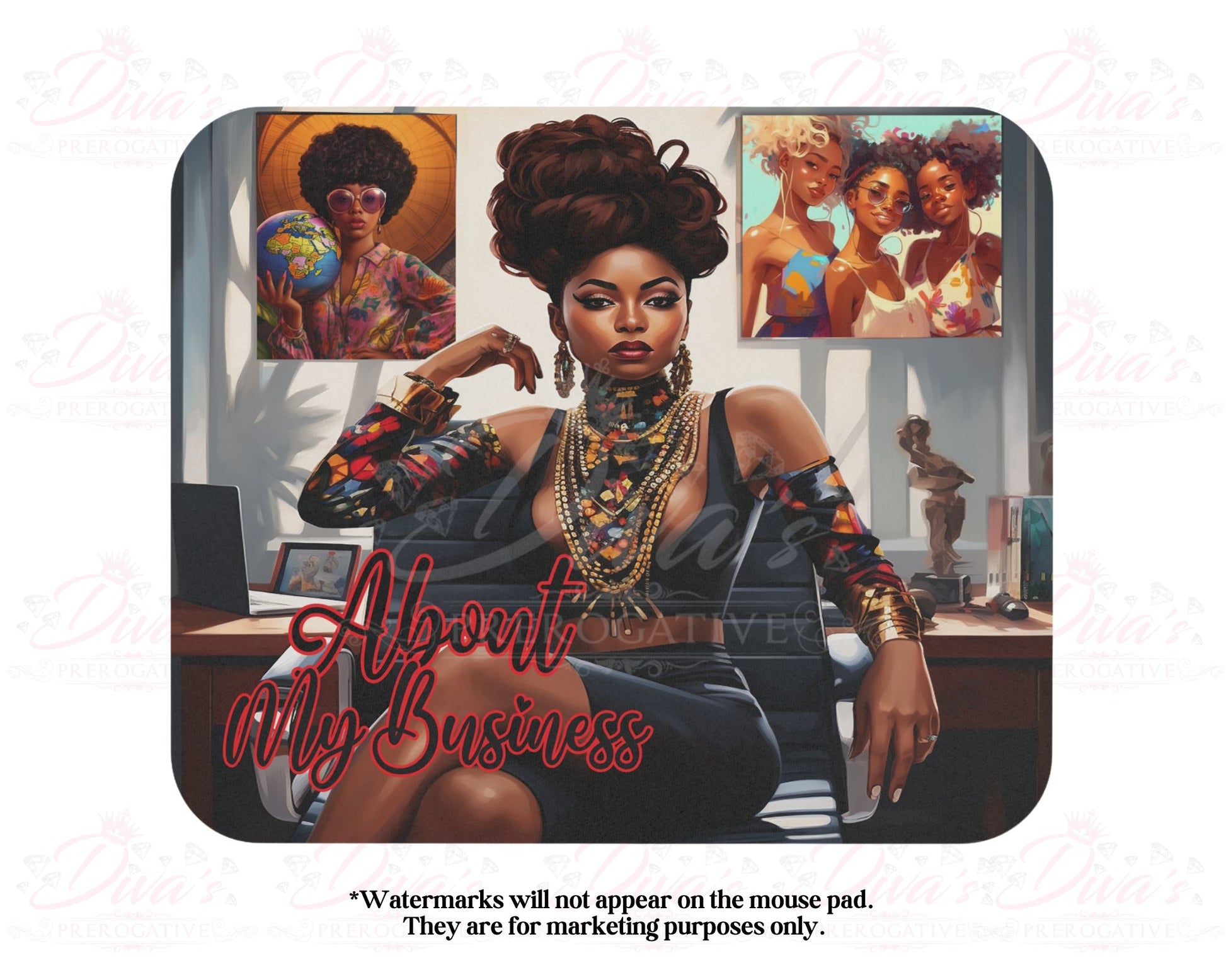 Command your workspace with the "About My Business" Mouse Pad, featuring a commanding illustration of an African American woman exuding power and confidence. Perfect for adding a touch of sophistication and empowerment to your office or home desk setup.