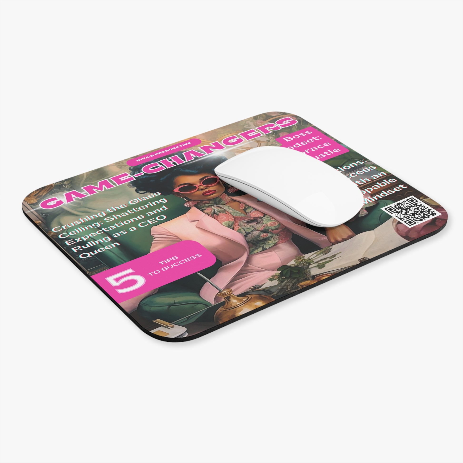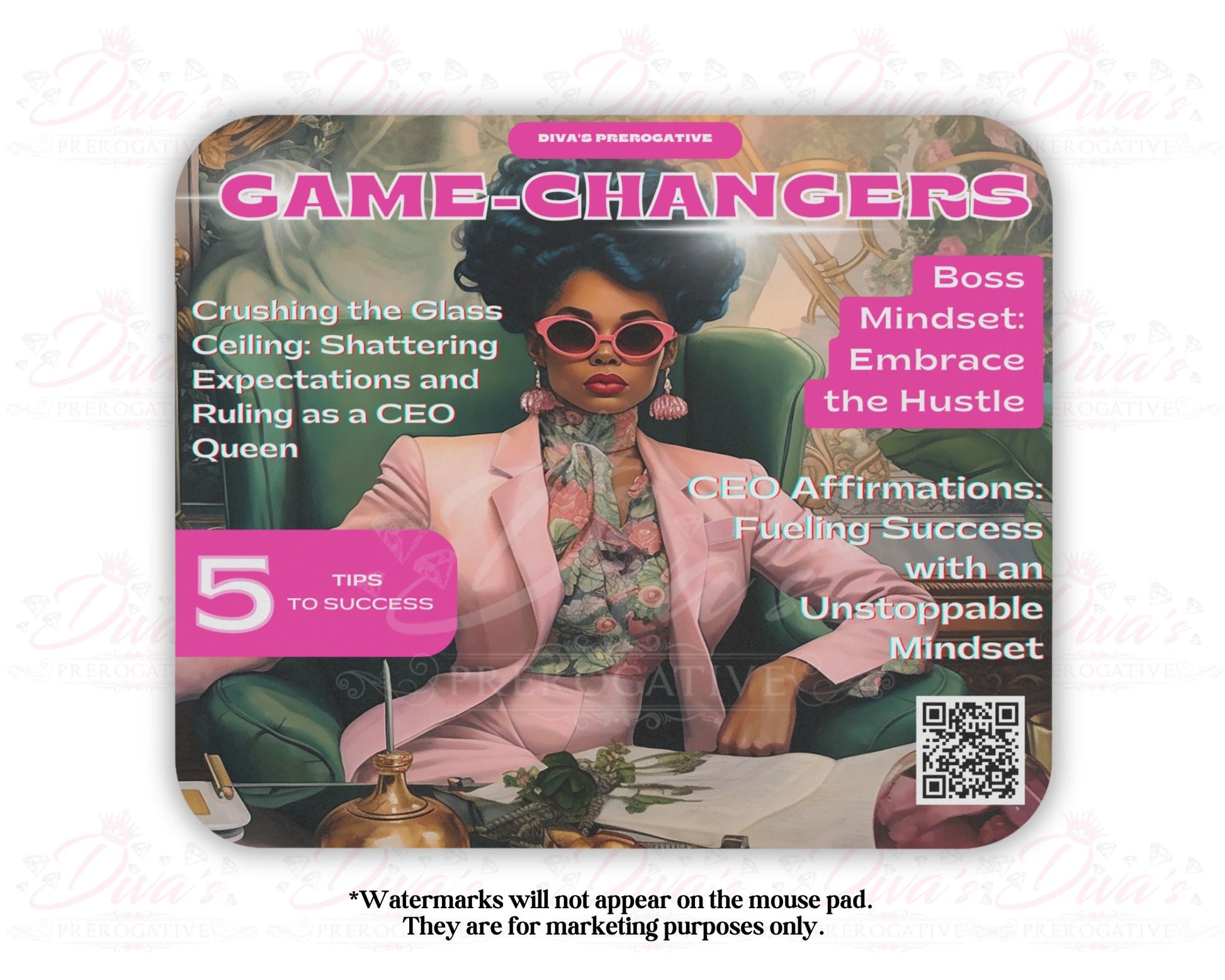 Empower your workspace with the "Game-Changers" Mouse Pad, featuring a striking illustration of an African American woman with a CEO mindset. Perfect for adding a touch of sophistication and motivation to your office or home desk setup.