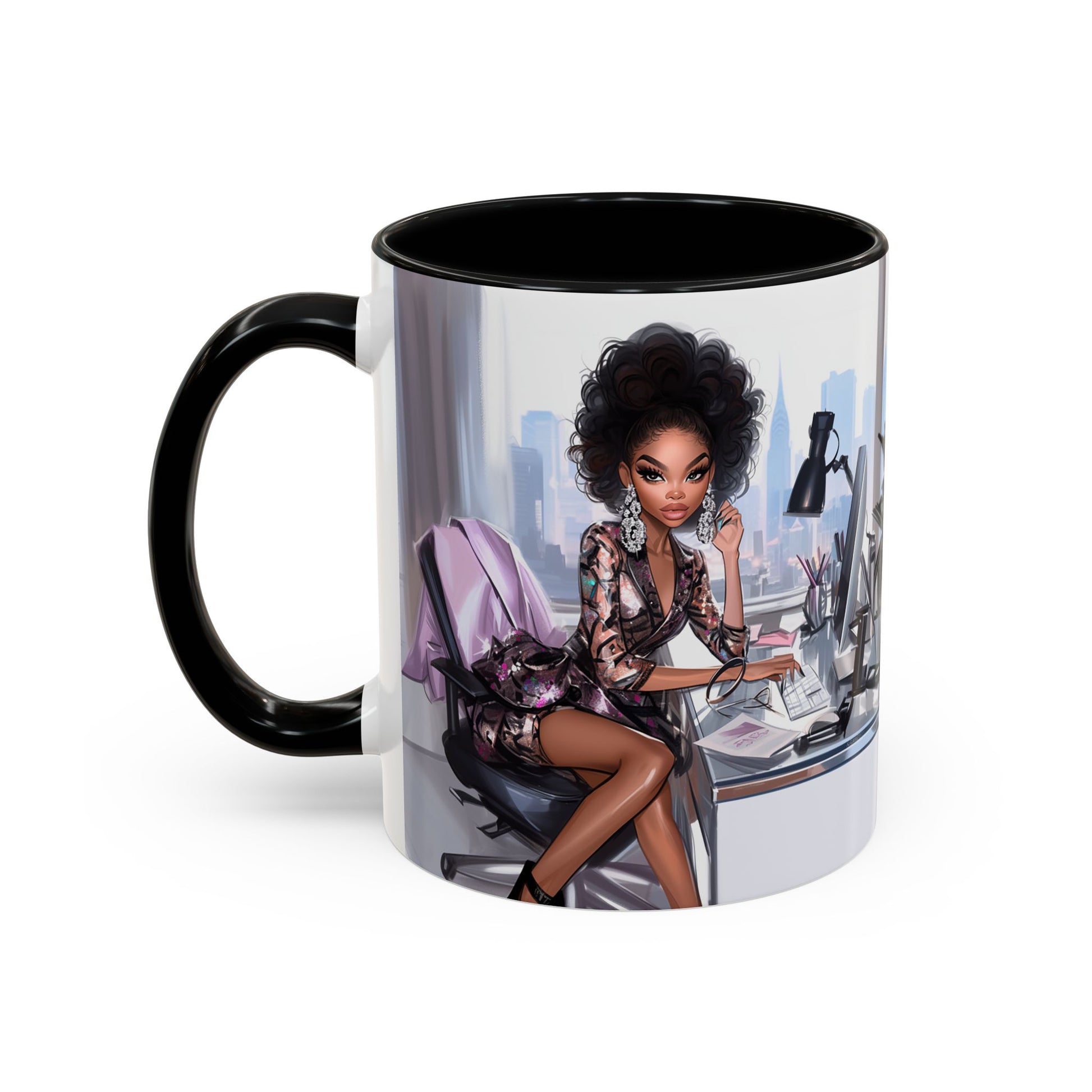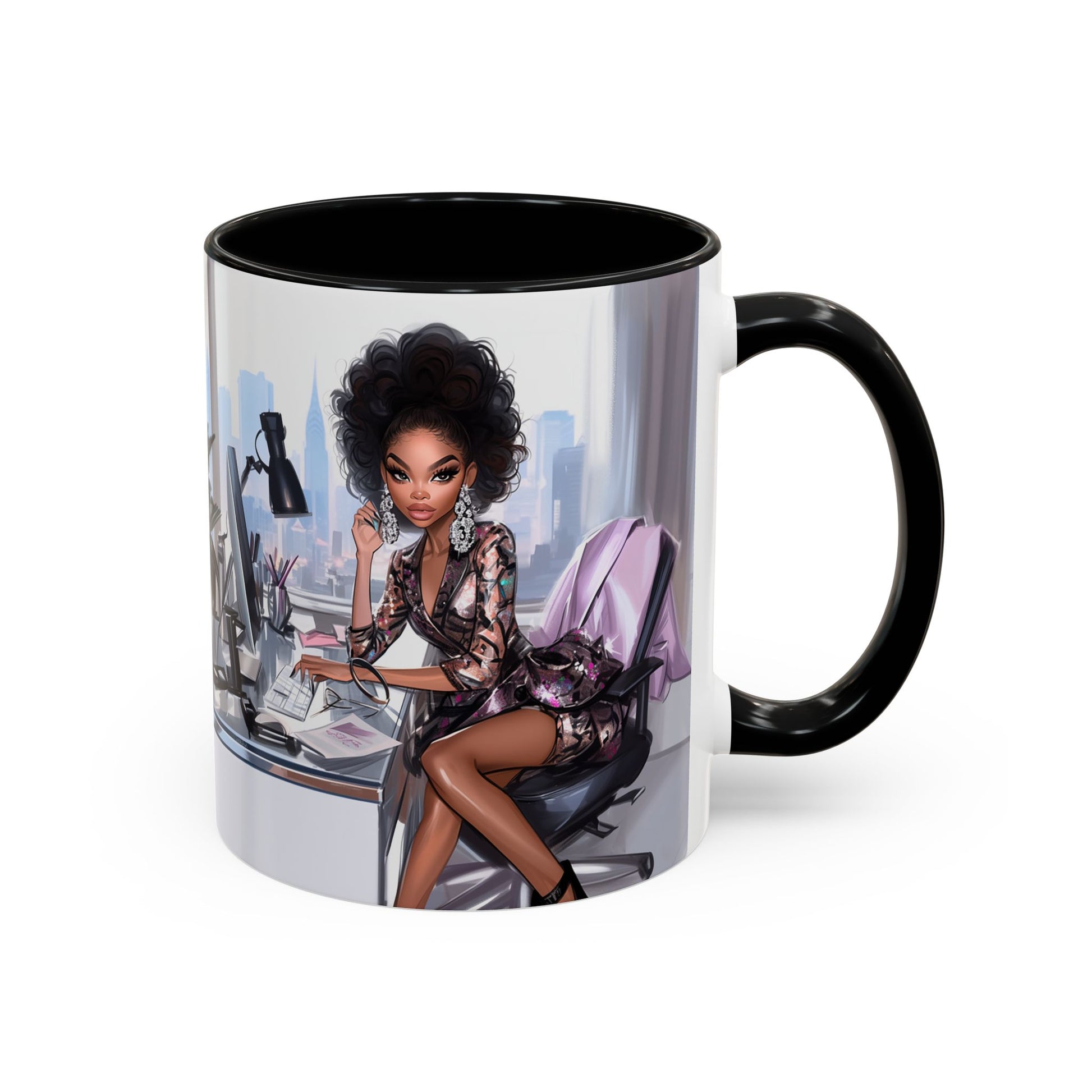 This mug is more than just drinkware—it’s an attitude. Featuring a striking illustration of a powerhouse woman in a metallic blazer dress, poised in her high-rise office with a city skyline behind her, The Boss Suite embodies ambition, elegance, and unapologetic success. Whether you're closing deals, breaking barriers, or simply owning your day, this mug is your daily dose of motivation.